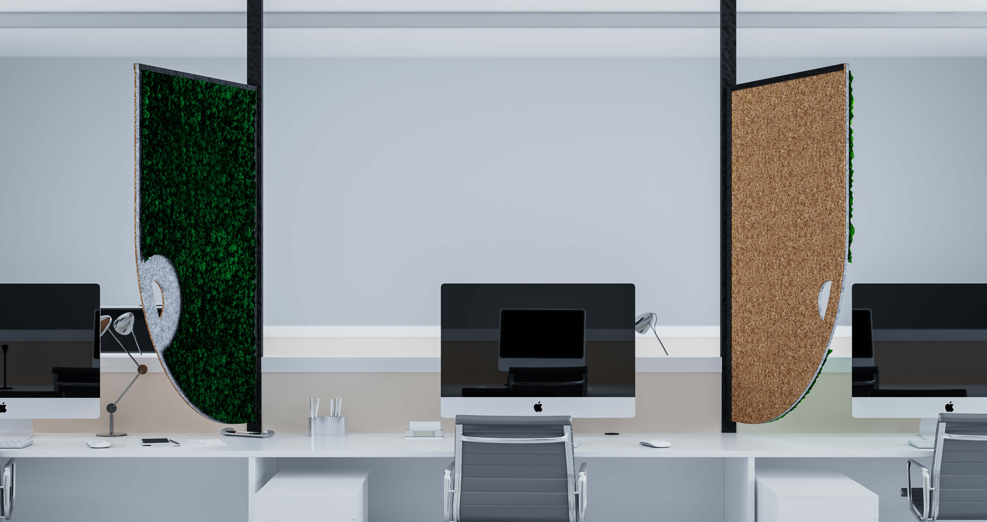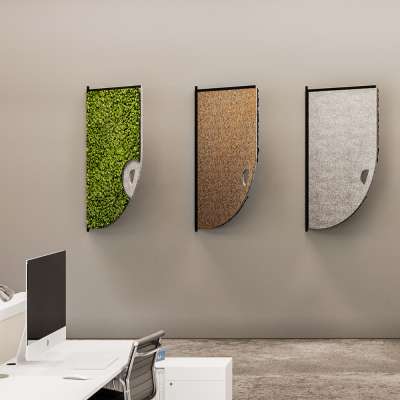 The Comma acoustic screens are available in a variety of different moss tones and can be mixed and matched to suit any interior design scheme.