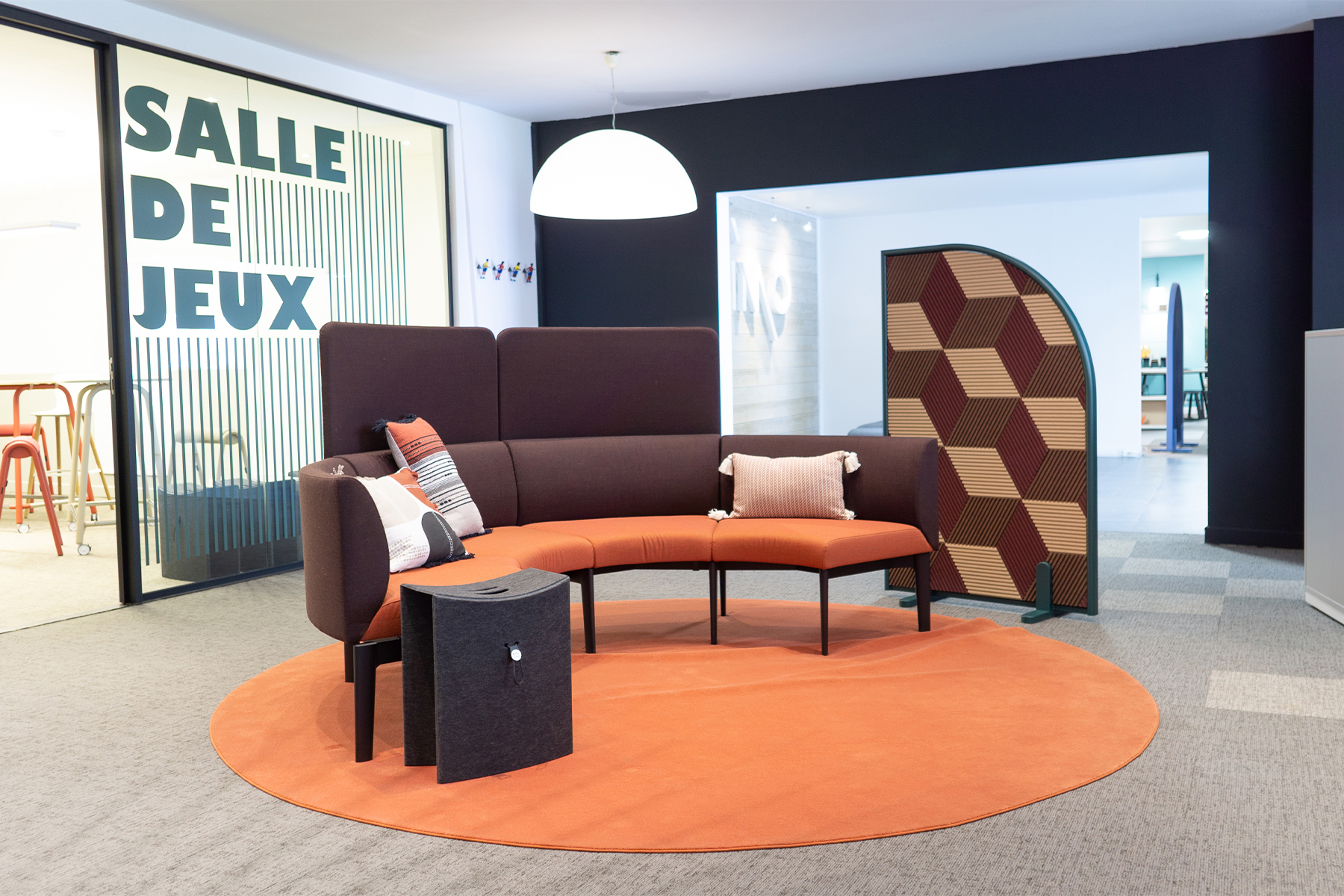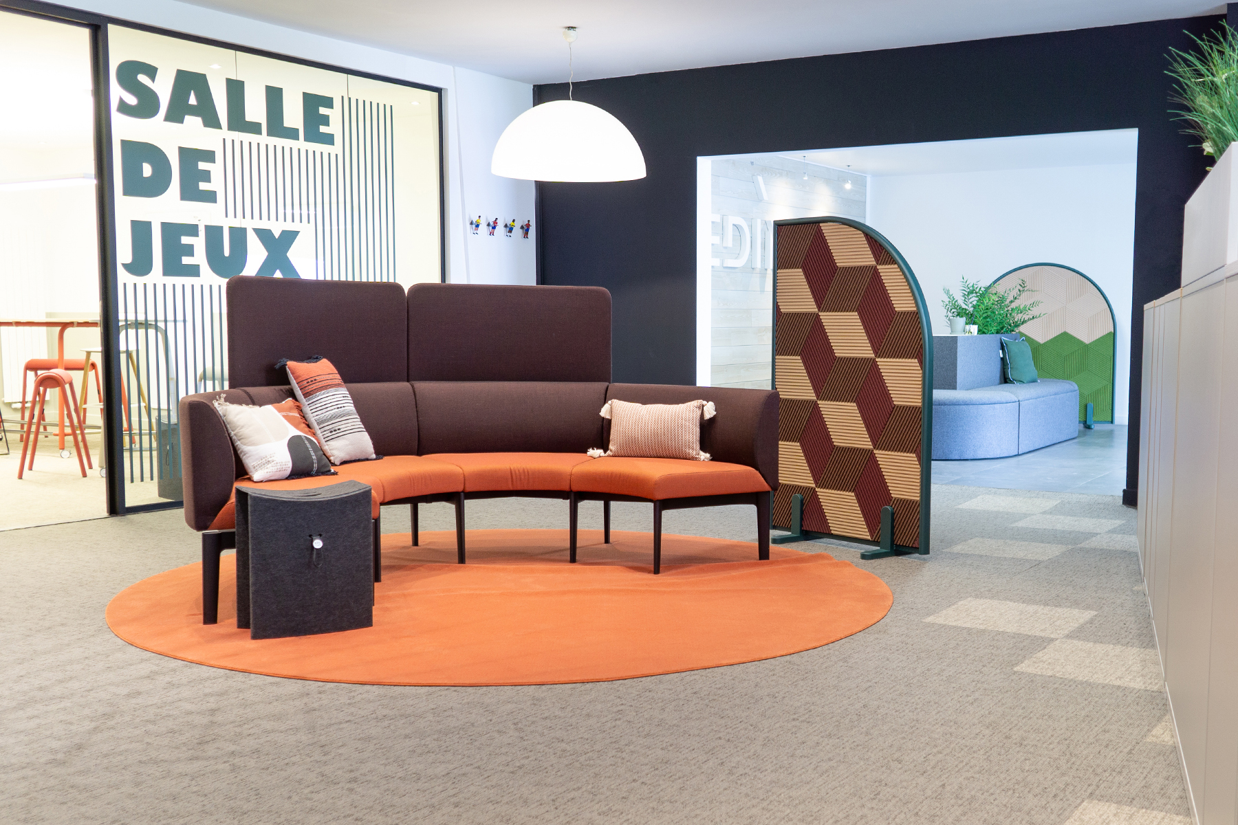 The curved models provide a nice contrast to the often straight lines and sharp edges of a typical corporate environment, while the straight model is easy to fit into any space or can be used as a link connecting two half arch models.