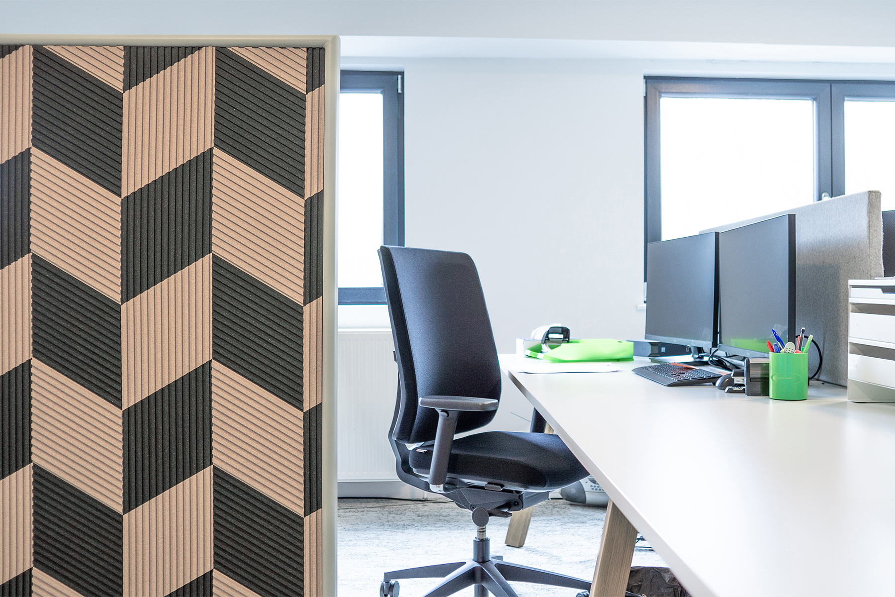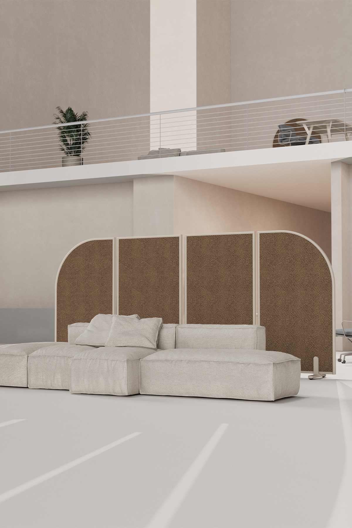 Different models with the same pattern can be placed next to each other for creating a larger space divider with a sense of continuity.